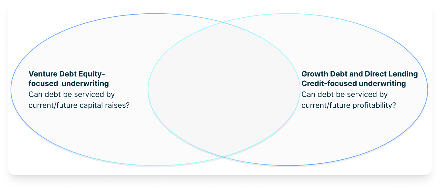 With this early-stage in mind, venture debt underwrites the ability of cash-burning companies to service and repay debt from existing liquidity (from a recent fundraise) and future liquidity (from a future fundraise) – both of which rely on equity considerations.