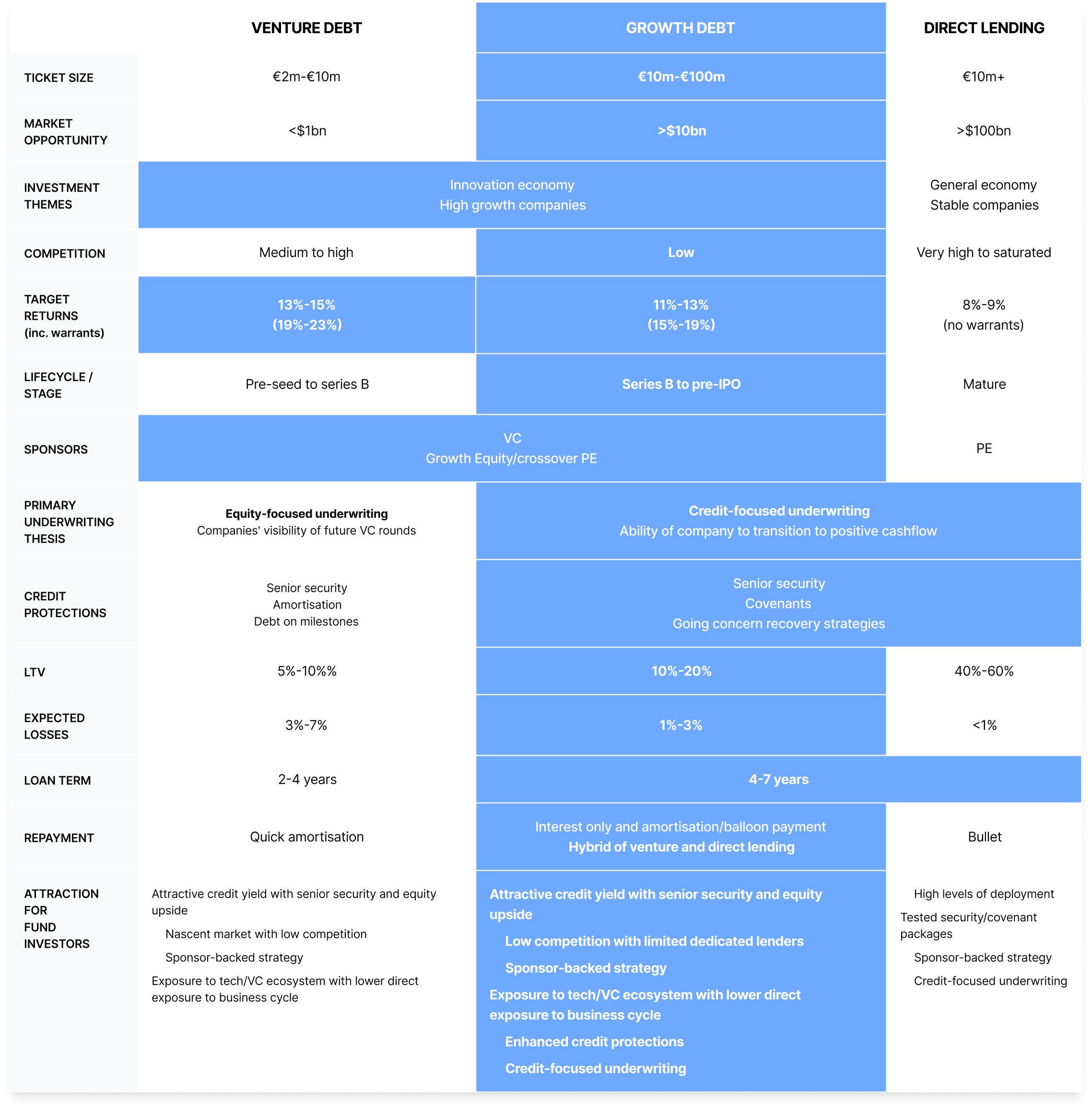 Private Credit Strategies: How do direct lending, venture debt and growth lending compare?