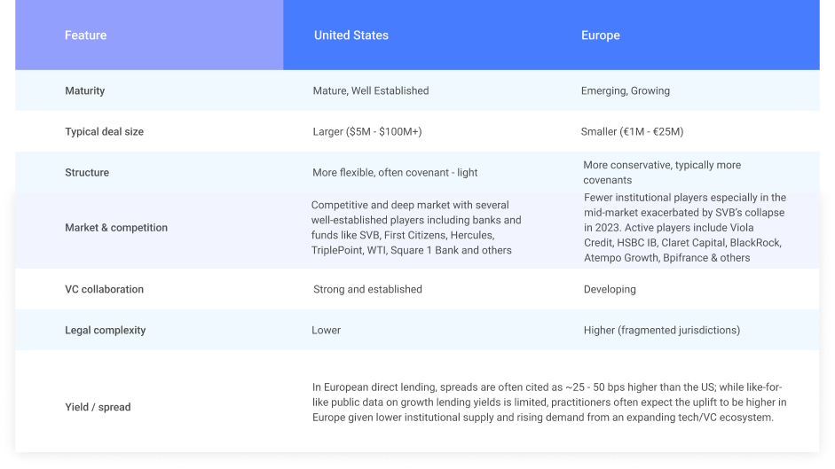 The practical implication is that European growth lending often requires more bespoke structuring and jurisdictional expertise.